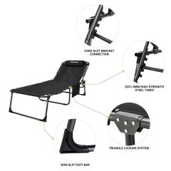 Sandalyeyi farklı pozisyonlarda kilitlemenizi sağlayan üçgen kilit sistemli şezlonglar, oturabilir, yaslanabilir veya düz yatabilirsiniz. Alet gerekmez! Hızlıca açıp katlayabilirsiniz, her şeyi katlayın ve işiniz bitti. Sadece birkaç saniyenizi harcayın, çok uygun.