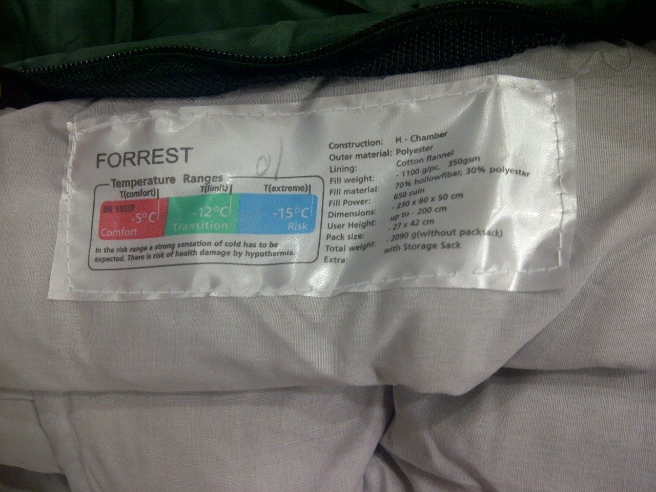 - Comfort: -5 C / Extreme: -15 C